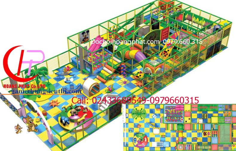 Nhà liên hoàn KT 8.5m x 19m x 2.8mNhà liên hoàn hay còn gọi là nhà bóng là tổ hợp vui chơi được trẻ rất yêu thích, giúp trẻ phát triển cả về thể chất và trí tuệ.S000047Nhà liên hoànSố lượng: 1 cái